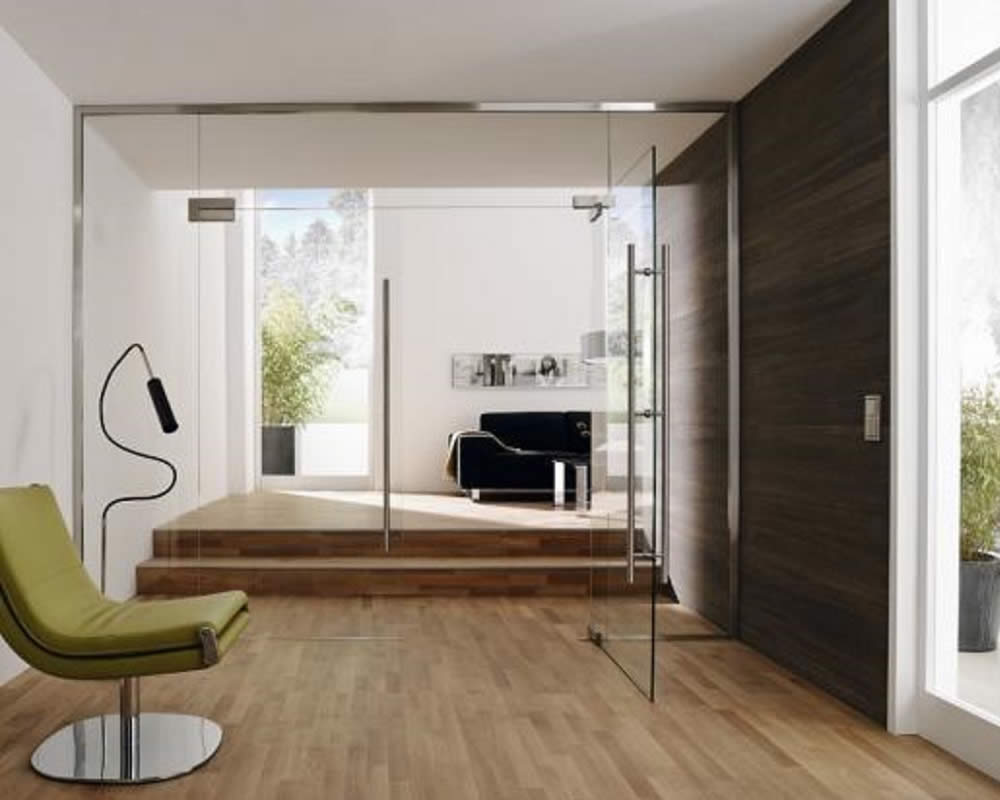 Met een hardglazen aanslagdeur kunt u zeer eenvoudig een nieuwe deur laten realiseren in bestaande houten en stalen kozijnen. Dit alles i.c.m. een uitgebreid aanbod in functionele toebehoren zoals sloten, klinken en deurgrepen in rvs, aluminium, hout en glas.
